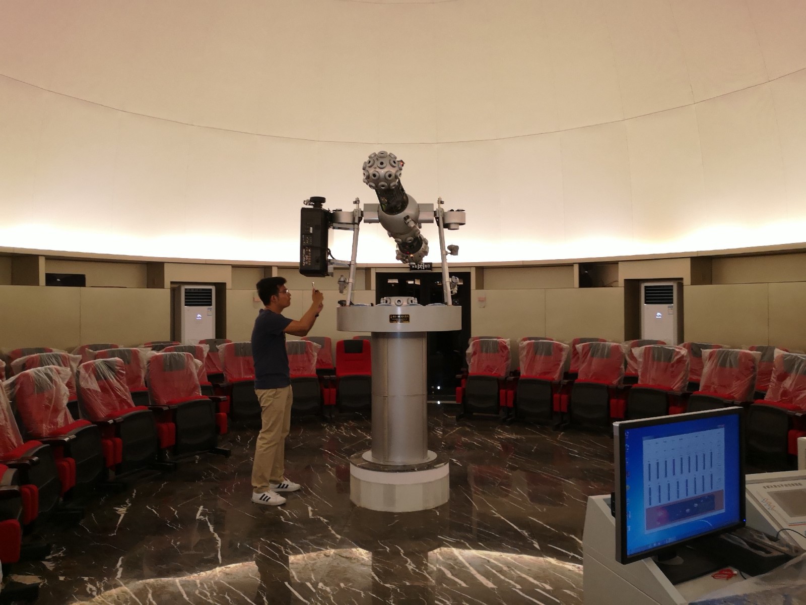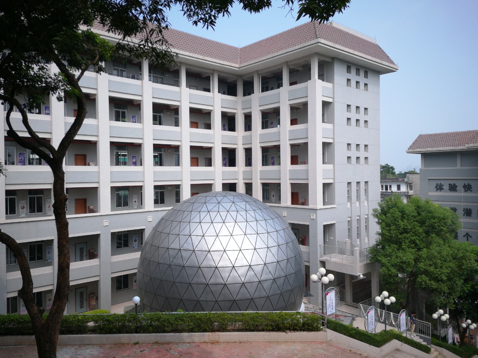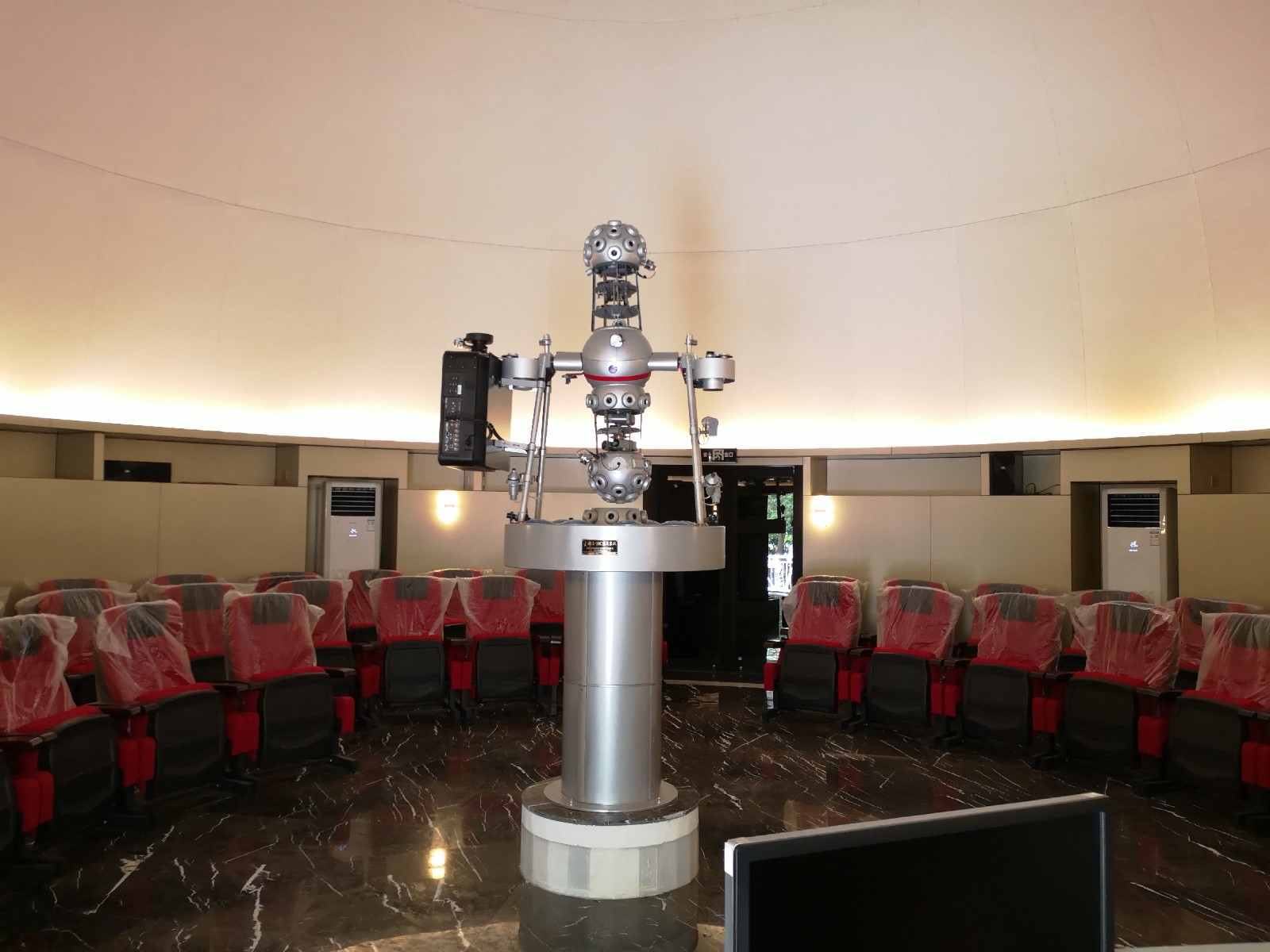 汕头金山中学天象馆,于2019年5月竣工。采用了12米直径宝石状超半球外球幕,内球幕采用了10米直径的成形板球幕,大大的提高了天象馆球幕的品质放映效果。设备采用的我公司S-10C双系统光学天象仪,能实现快捷的教学设计编排和球幕视频播放的完美结合,达到了国际校园天象馆建设的最高水平。