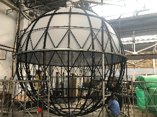 720°成形板整球球幕整体完成,并架设透明观赏廊桥。